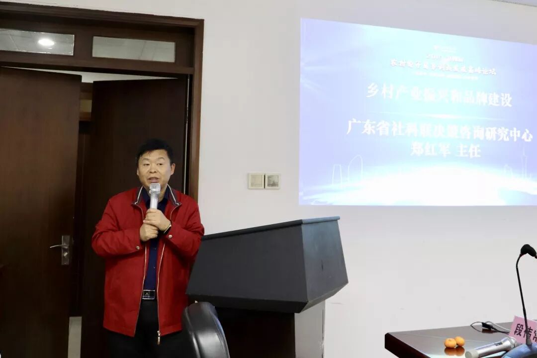 广东省社科联决策咨询研究中心主任郑红军发表了《乡村产业振兴和品牌建设》主题演讲,郑红军主任指出乡村产业振兴从广东省的层面来讲,20个地市都有三农工作,广东开放40多年,经济领先全国,但是有14个市人均收入低于平均水平,扶贫工作任重道远。