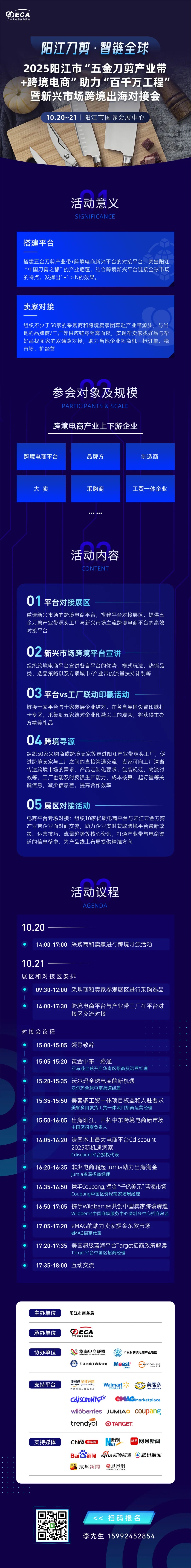 阳江市商务局主办、我会承办的【2025阳江市“五金刀剪产业带+跨境电商”助力“百千万工程” 暨新兴平台对接会】将于2025年10月20-21日在阳江举办,欢迎相关采购商与跨境卖家报名参加,共拓商机!